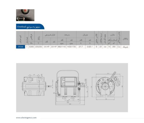 مشخصات الکترو موتور کولر آبی الکتروژن مدل 3/4 EG