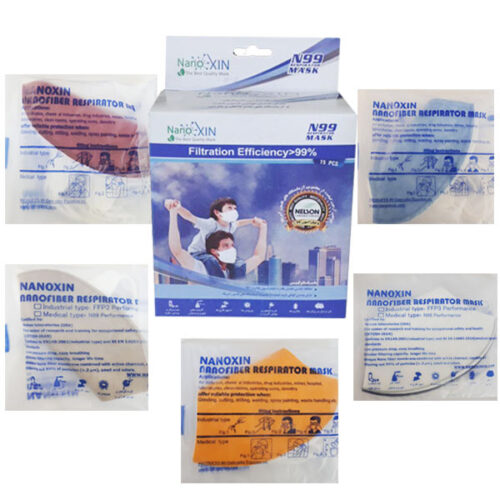 ماسک تنفسی نانوکسین مدل NANOXIN N99 پنج لایه است و دارای لایه فیلتر ملت بلون برای فیلترینگ ذرات میکرونی و دارای لایه پوشش داده شده با نانو الیاف همراه با ذرات ذغال فعال جهت فیلتر ذرات ریزآلاینده و عوامل بیماری زا می باشد. لایه نانو این ماسک قابل دیدن نیست، یعنی با برش، چهار لایه آن با چشم غیر مسلح دیده میشود.