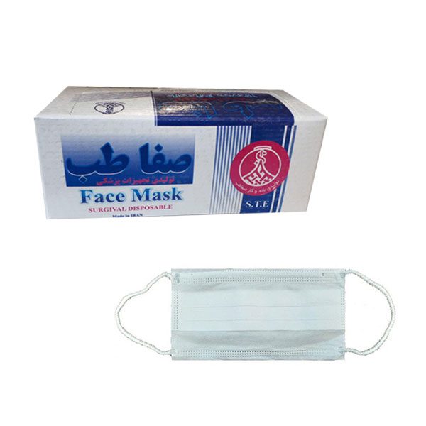 ماسک سه لایه جراحی کشدار ۵۰ عددی صفا طب مقاوم در برابر رشد و نمو باکتری و مناسب برای استفاده در اماکن عمومی، بیمارستان، مدارس و محیطهای صنعتی و… ودارای سیب سلامت میباشد.