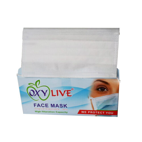 ماسک سه لایه جراحی کش دار OXY LIVE تهیه شده از بهترین نوع پارچه بی بافت اسپان باند و دارای کش مناسب می باشد.