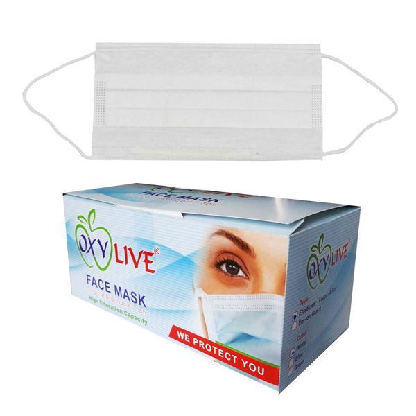 ماسک سه لایه جراحی کش دار OXY LIVE تهیه شده از بهترین نوع پارچه بی بافت اسپان باند و دارای کش مناسب می باشد.