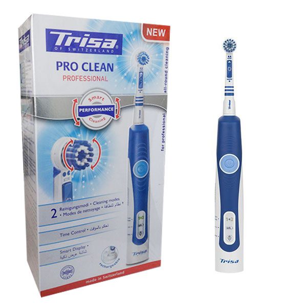 مسواک برقی تریزا پرو کلین پروفشنال Trisa Pro Clean Professional دارای صفحه نمایش هوشمند بوده و ۲ حالت تمیز کردن نرمال و حساس را داراست. برس این محصول که قابل انعطاف با فرم مقعر دندان است، ثبت اختراع شده و به خوبی با شکل طبیعی دندانها سازگار میشود. این محصول توسط متخصصان سوییسی جهت پیشگیری از مراجعه به دندان پزشک تولید شده است. سری مسواک انعطاف پذیر دارای برس منعطف، با فشار ملایم و یک دست منحصر به فرد خود، دندانها و لثه را به شکل موثری تمیز میکند. مسواک برقی تریزا دارای هشدار مدت زمان شست و شوی دندانها میباشد.