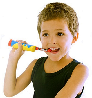 مسواک برقی کودک ارال بی Oral-b به منظور تشویق کودکان به استفاده از مسواک شانزده برنامه موزیک دارد که به صورت اتفاقی درهر بار استفاده یک موزیک را در زمان مسواک کردن پخش می کند و کودک را به مسواک زدن طولانی تر تشویق می کند.