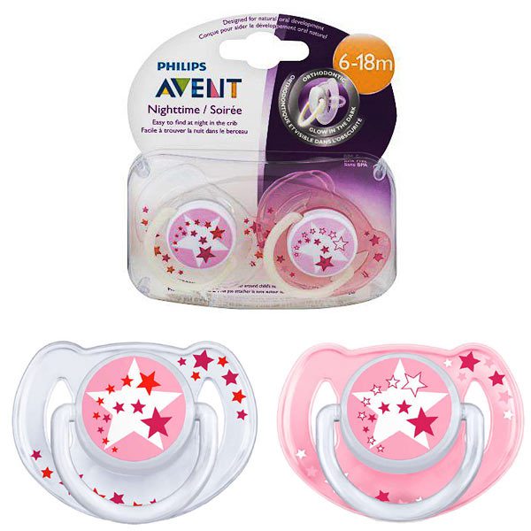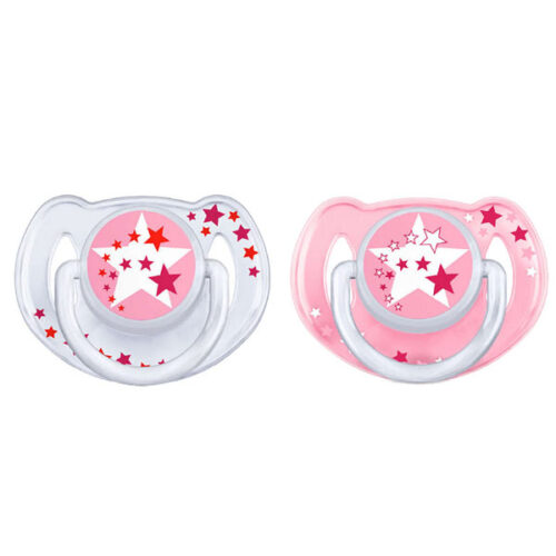 پستانک جریان آزاد دو عددی فیلیپس اونت 6-18 ماه PHILIPS AVENT جهت عبور و مرور هوا زیر پوست کودک بر روی بدنه پستانک سوراخ های بیشتری تعبیه شده است و دارای بدنه ای صورتی ستاره گون و دستگیره ای نورانی در شب می باشد که قابل انعطاف و دارای شکل متقارن بوده و به رشد کام، دندان و لثه کودک به صورت طبیعی کمک می کند. پستانک ارتودنسی شب تاب اونت در رشد طبیعی بخش های داخلی دهان کودک مشکلی ایجاد نمی کند.
