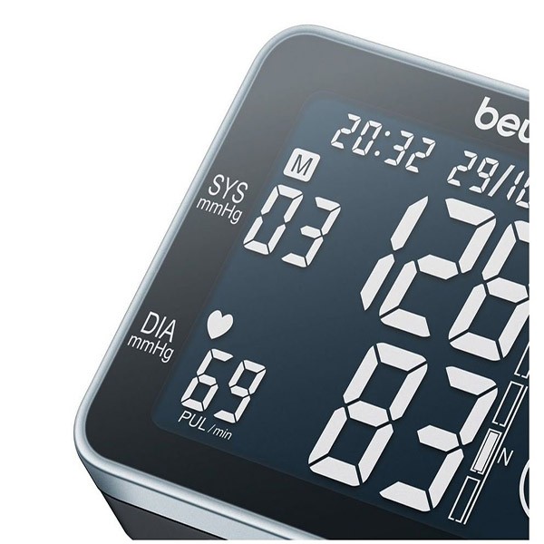 فشار سنج مچی دیجیتالی بیورر Beurer مدل BC 58 ساخت کشور آلمان جهت سنجش فشارخون و ضربان قلب بسیار مناسب می باشد. این دستگاه دارای صفحه نمایش با دکمه های تمام لمسی می باشد. برای جلوگیری از فعال شدن سهوی صفحه نمایش، هنگامی که نیازی به استفاده از دستگاه ندارید می توانید دکمه واقع در کناره بدنه را در وضعیت خاموش قرار دهید. برای روشن کردن دستگاه کافی است دکمه فعال کننده صفحه نمایش را در وضعیت روشن قرار دهید. با لمس صفحه نمایش صدای بوق به گوش می رسد. فشارسنج بیورر مدل BC 58 مجهز به ورودی USB می باشد. با اتصال لوازم جانبی اضافی شامل یک سی دی یا نرم افزار کامپیوتر و سیم رابط می توانید اطلاعات بدست آمده را ارزیابی نمائید.